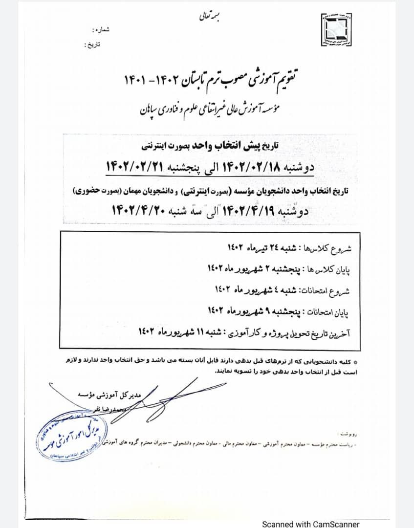 تقویم آموزشی ترم تابستانی 1402 دانشگاه سپاهان را می توانید از لینک زیر دانلود نمایید: